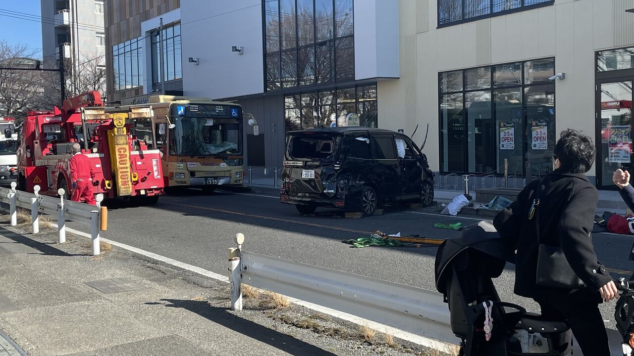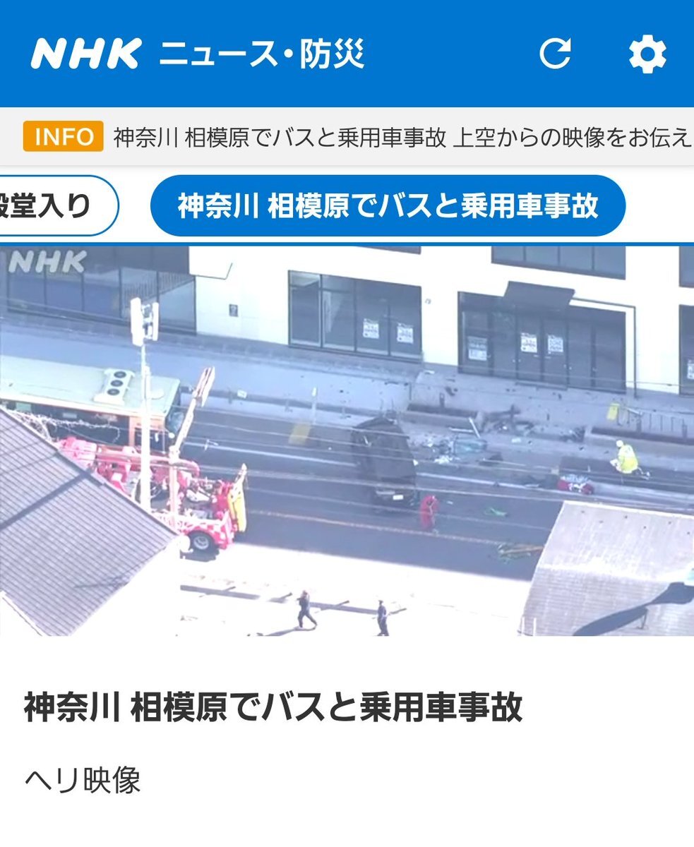 相模原でバスと乗用車の事故らしい。
