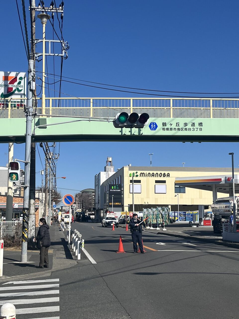 現在小田急相模原 と相模大野 間の 出光のガソリンスタンド前で 道路が完全封鎖されております。 近くを通られる方は十分お気をつけください。