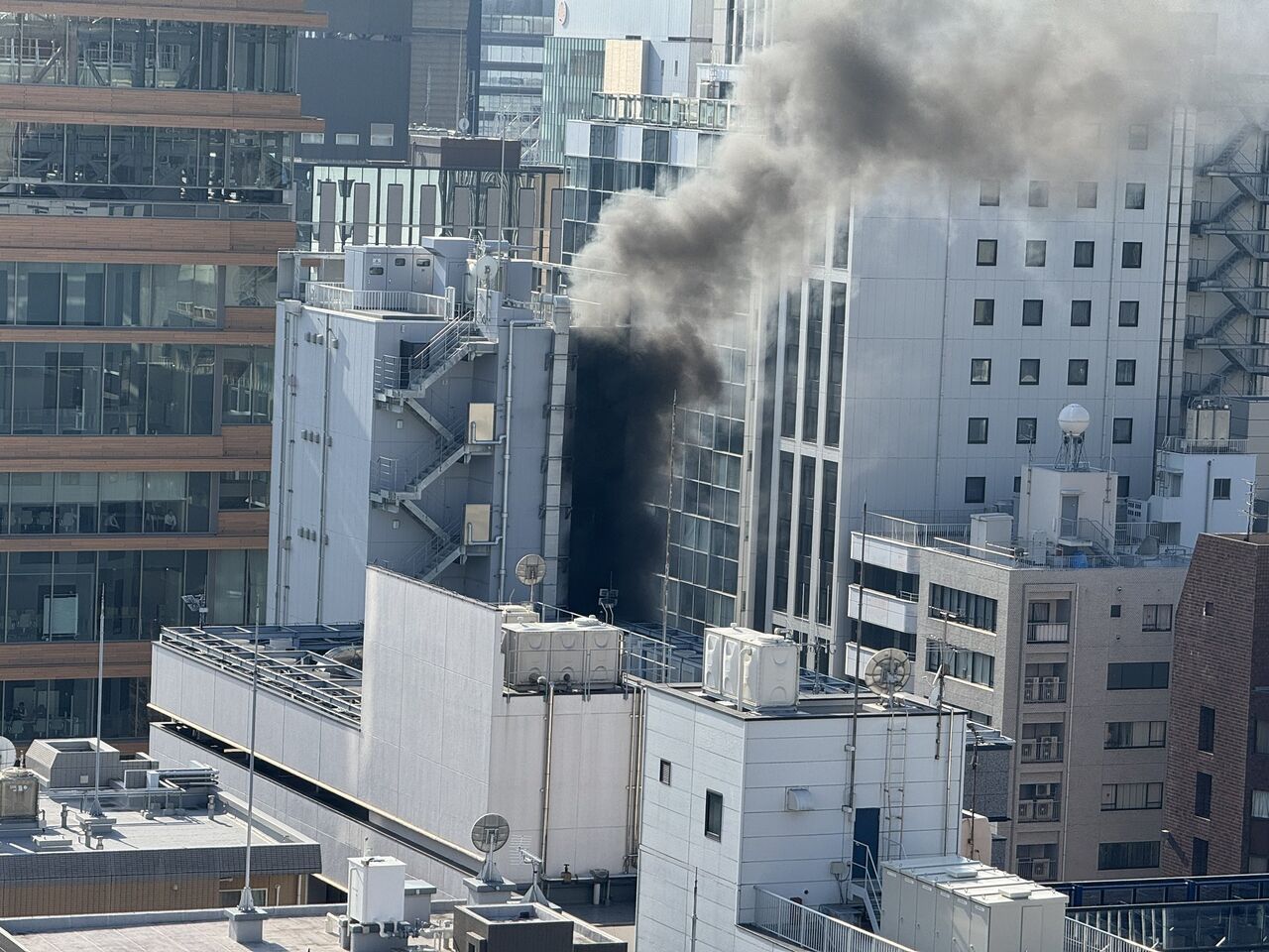 『銀座インターの近くの建物燃えてる…初めて火事現場見たガッツリ火が出てた』