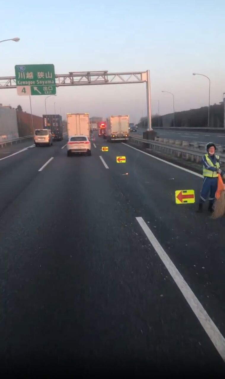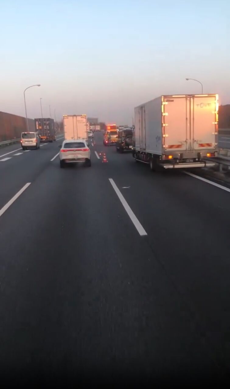 『関越下り。川越IC手前。事故ってます🤣ここんち。飛ばしてますもんね〜🤣』