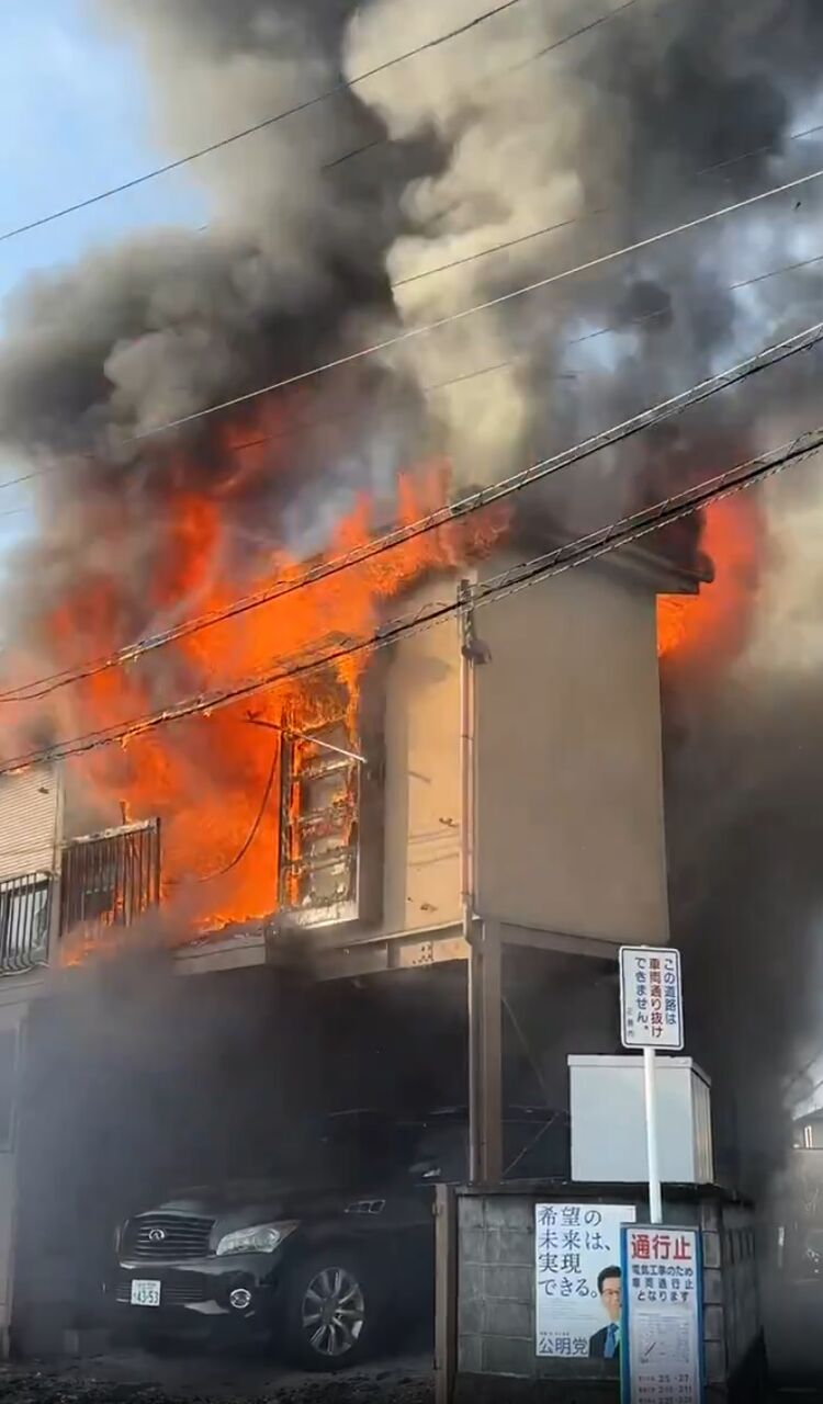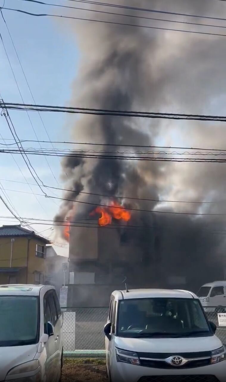 【火事情報】静岡県三島市青木 #伊豆箱根鉄道駿豆線 三島二日町駅南側付近 建物から火の手あがる火災1月24日 #静岡 #三島 #火災