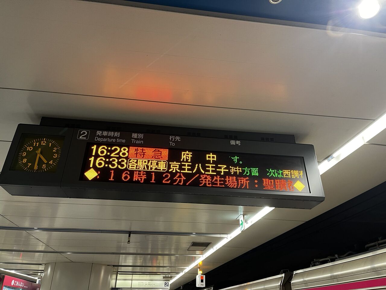 京王線遅れ。聖蹟桜ヶ丘で人身事故。とのこと。#京王線