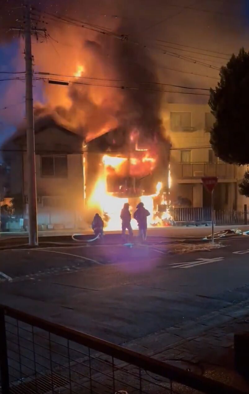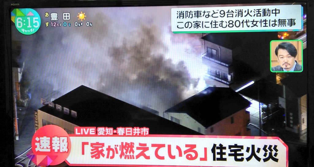 【火事情報】愛知県春日井市花長町2丁目 #名鉄小牧線 味美駅東側付近 住宅建物から火の手あがる火災1月24日 #愛知県 #春日井 #火災
