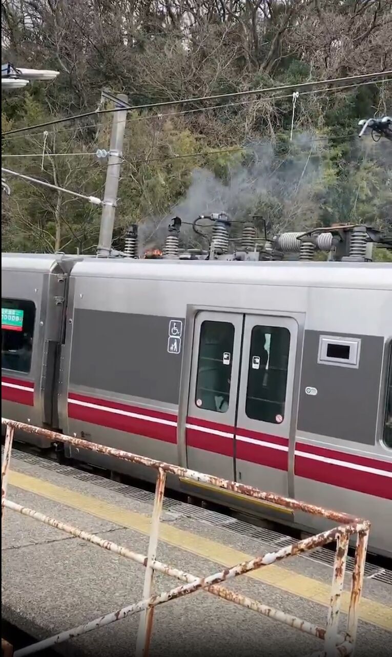 『中津幡駅で電車燃えとる』