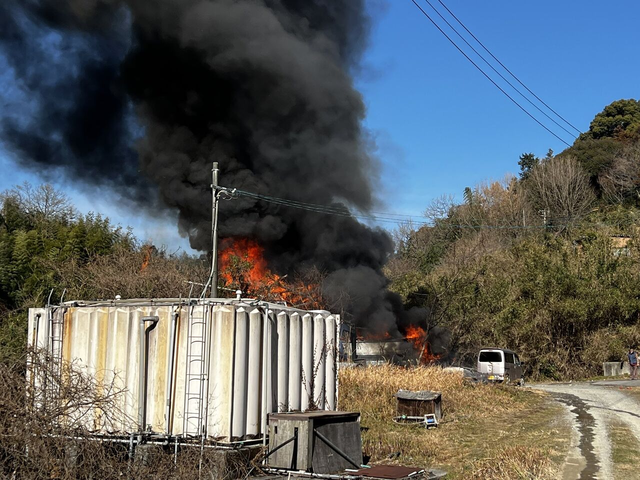 近隣で火災? なんだか 慌ただしい 大変だ😆消防到着で数分で鎮火した模様ですが、乾燥時期なので お互い気をつけましょう。機械トラブルかもしれませんが😆 pic.twitter.com/8HMCmz4tq5
