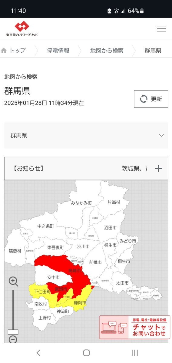 【現場の状況】#停電情報 群馬県高崎市や富岡市など一時約36000件大規模停電 JR高崎駅周辺も一部停電 信号消え運転注意1月28日 #停電 #群馬 #高崎 #富岡