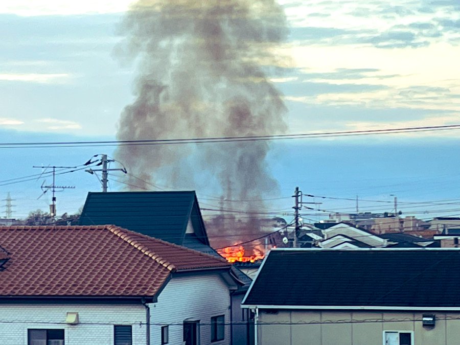 【火事情報】千葉県船橋市前原東2丁目 津田沼駅北東付近 住宅街建物から火の手あがる火災2月1日 #千葉 #船橋 #津田沼 #火災