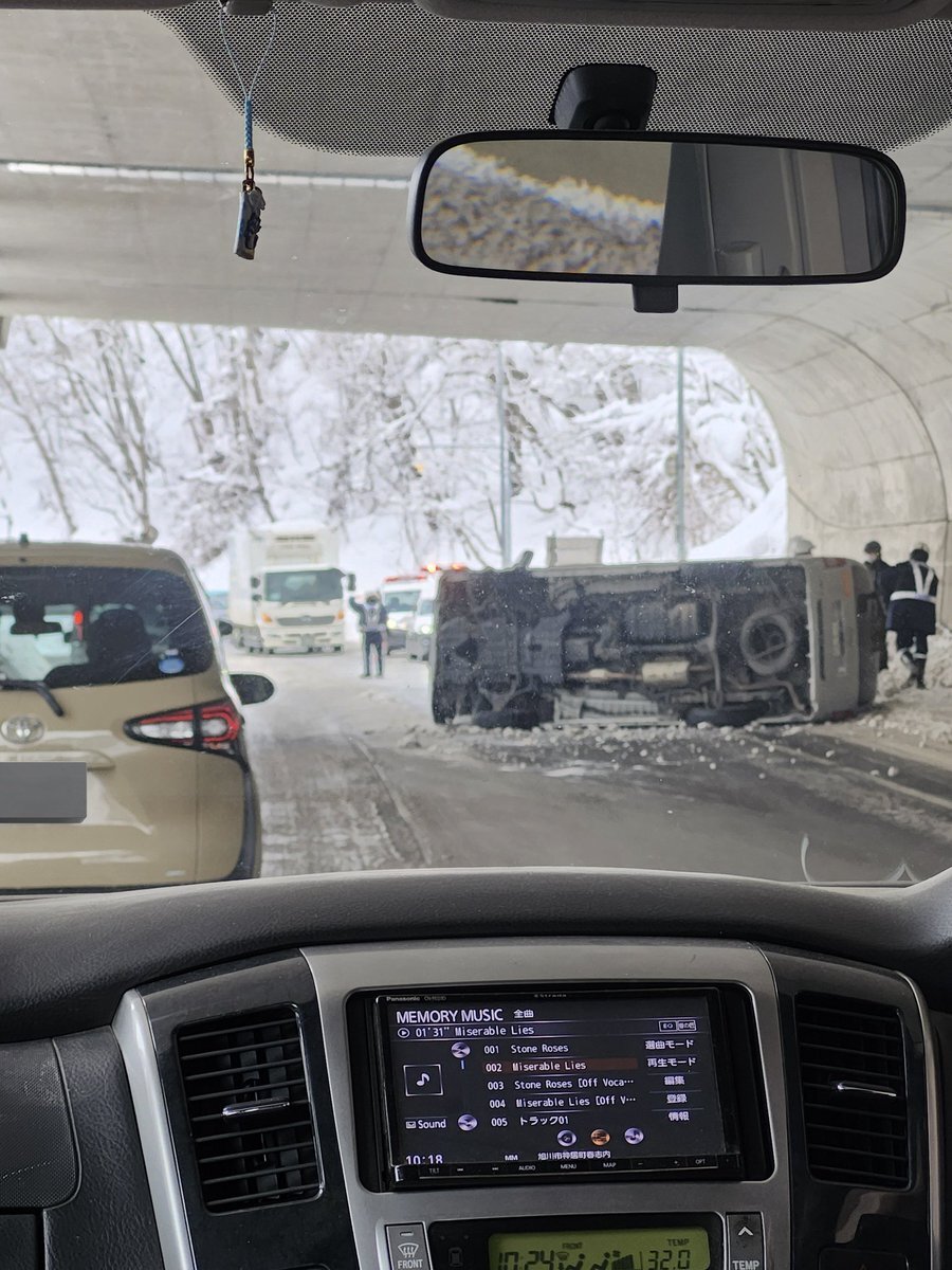 神居古潭のとこでハイエースひっくり返ってた🫠