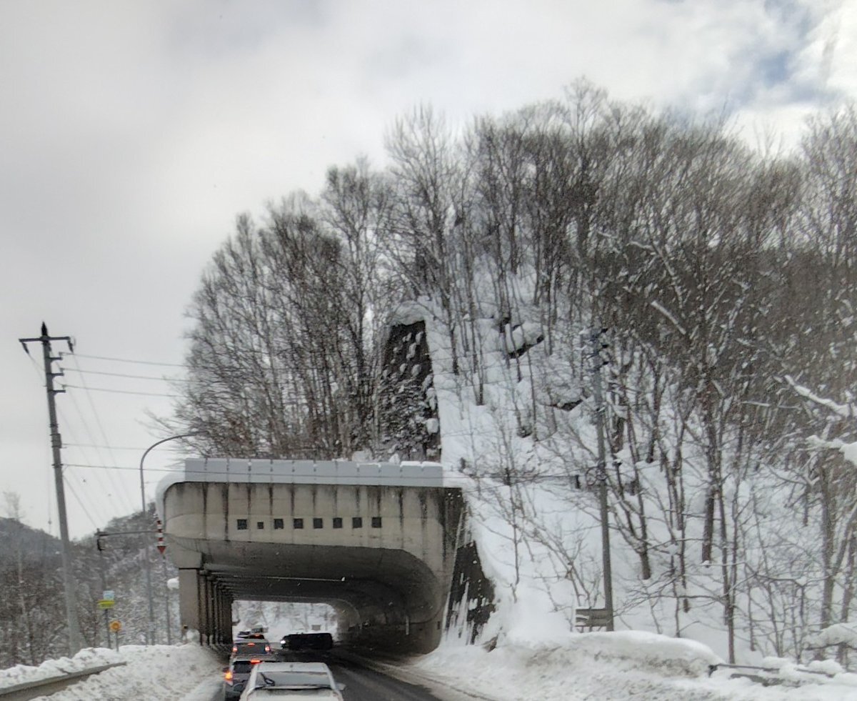 国道12号線神居古潭 覆道にてハイエース横転 片側交互通行渋滞中。@mst_hide pic.twitter.com/48gxNEFTX4