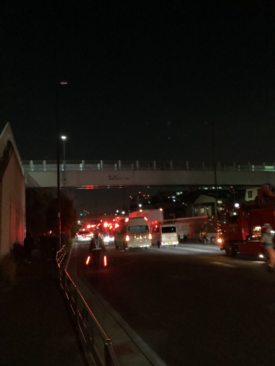 2車線完全封鎖状態の車横転だから時間かかると思う……』