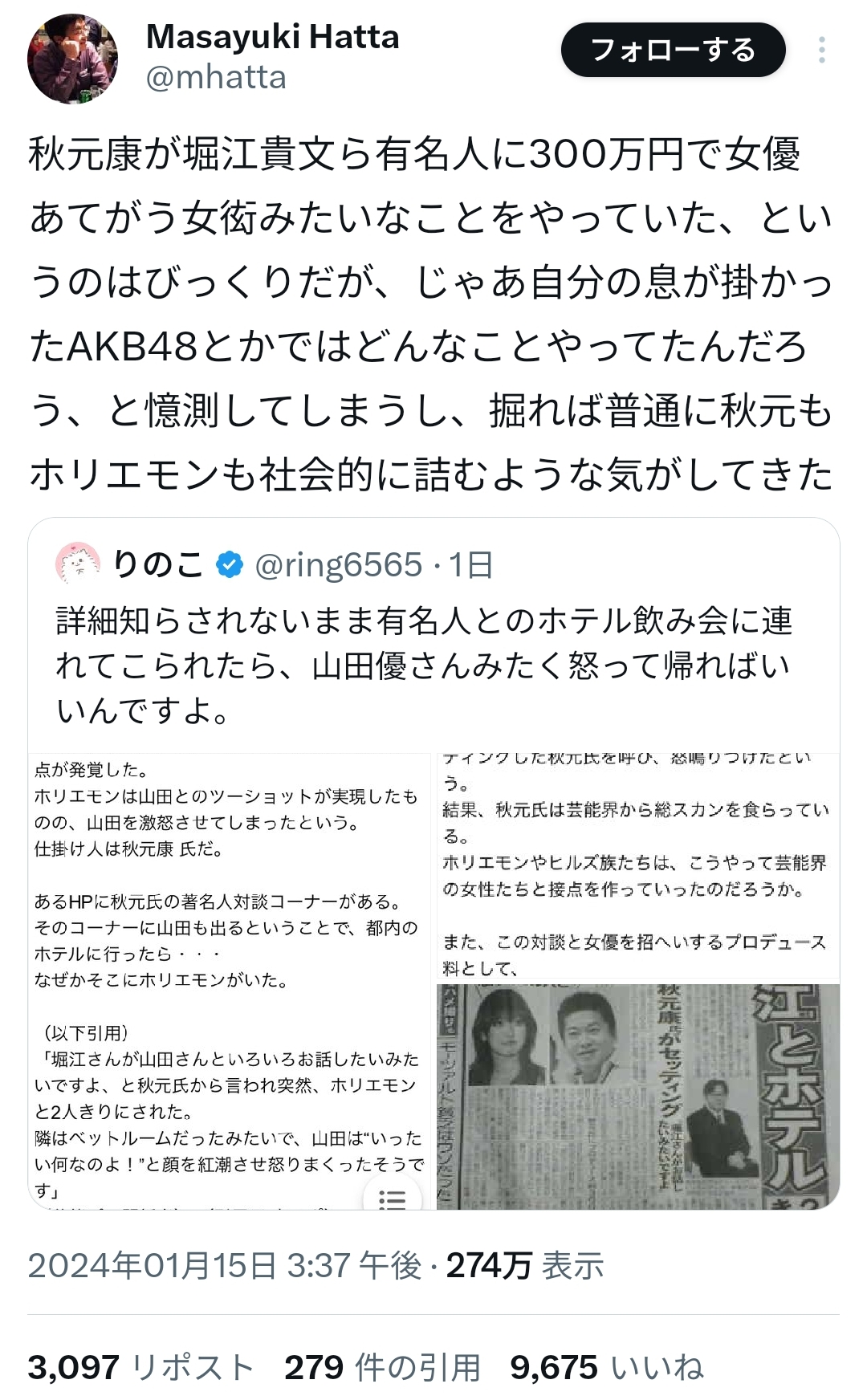 【伏線回収】秋元康さん、きな臭くなってきた 2025/2/6 速報 235: どうすんの document.write(” + ”); 関連記事 document.write(” + ”); 続きを読む ——— Source: アルファルファモザイク 【伏線回収】秋元康さん、きな臭くなってきた