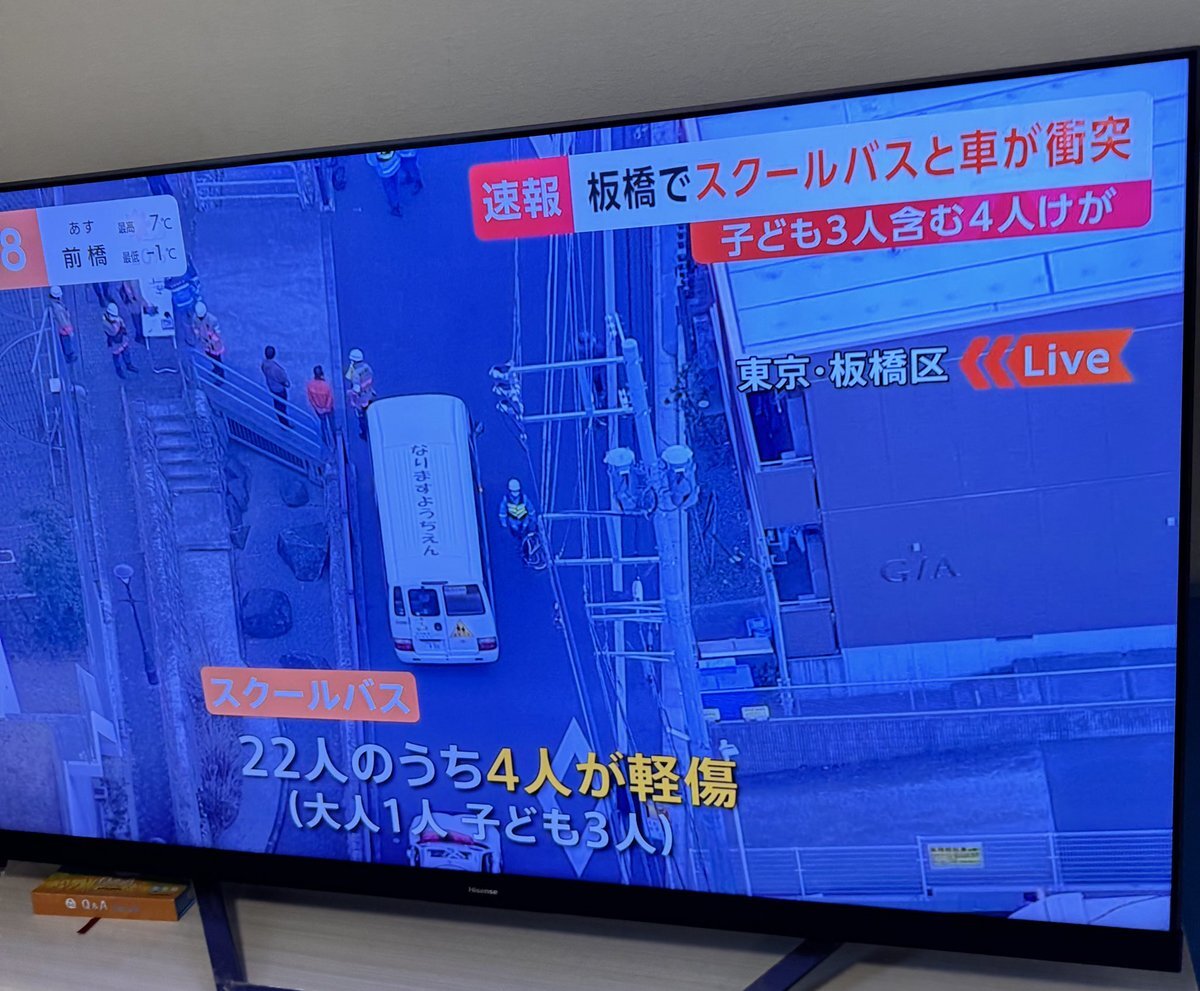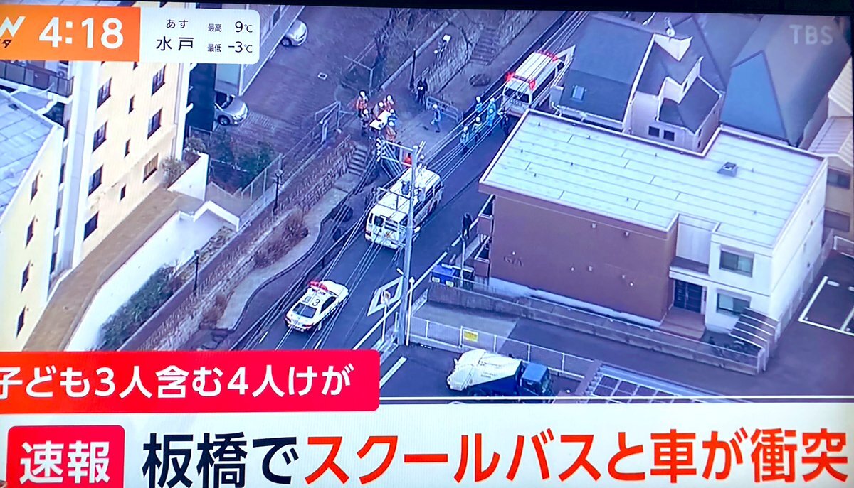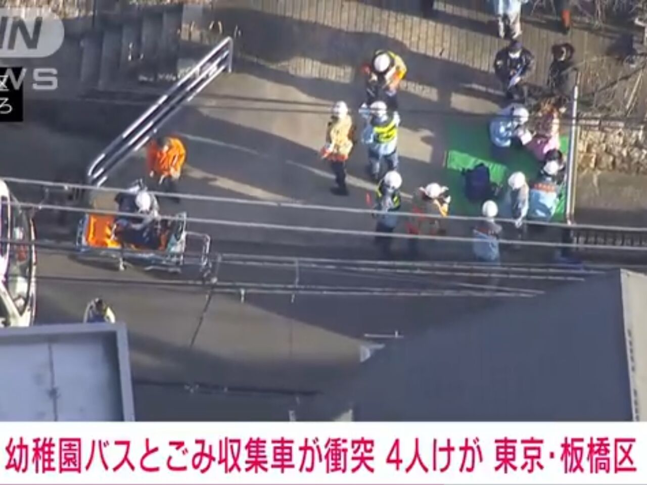 東京・板橋区で幼稚園のバスとごみ収集車が衝突する事故がありました。少なくとも4人がけがをしています。