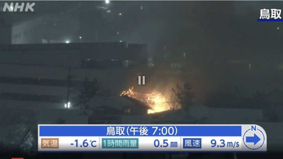 何気なく NHK の大雪のライブカメラ開いたら、鳥取が火事だhttps://t.co/NkUdRiksAu pic.twitter.com/6XNYcxC1NS