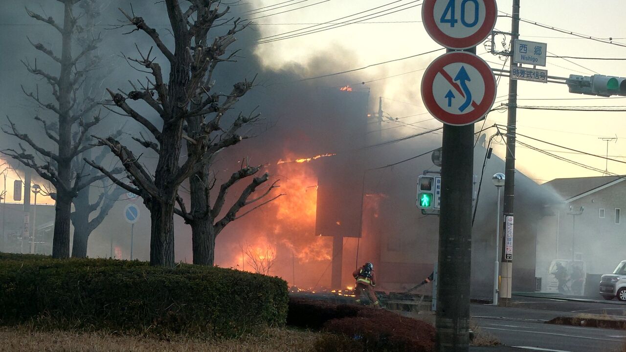 【火事情報】茨城県稲敷郡阿見町阿見 中華食堂 ゆきむら阿見西店付近 建物から激しい炎あがる火災 周辺道路一時交通規制2月8日 #茨城 #阿見町 #火災