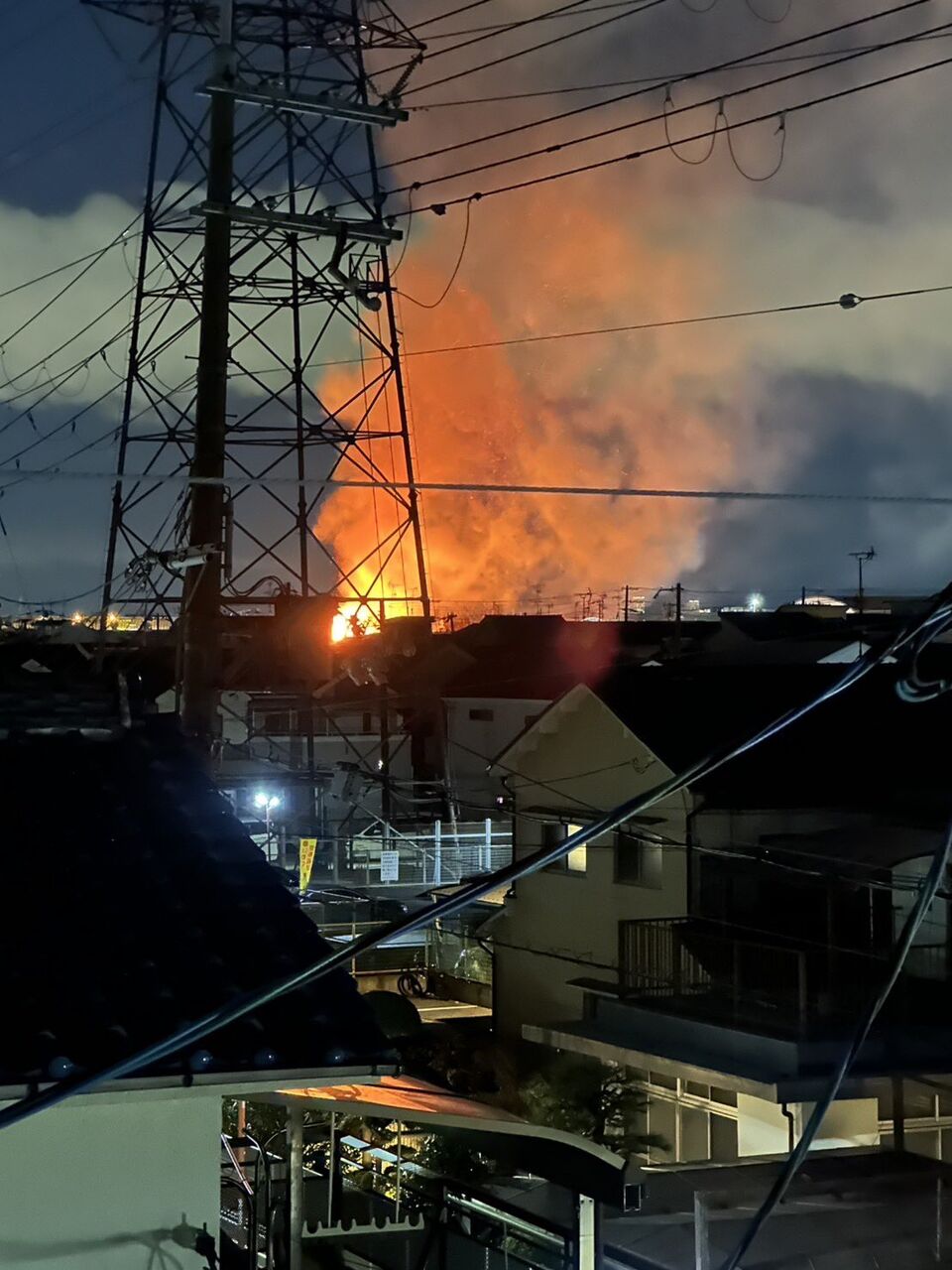 『四條畷イオンの近くで大火事めっちゃ燃えてる💦』