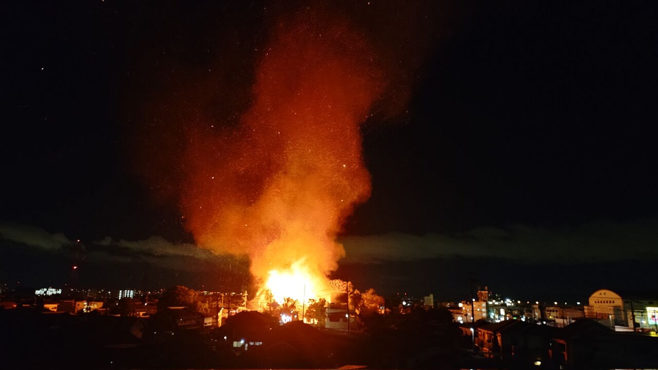 火の粉がエグいのでもしかしたら木造の本泉寺かも💦火の粉による飛び火、延焼に最大限の注意を!! https://t.co/iYUkKqMQ53 pic.twitter.com/YCn8iYXlAv