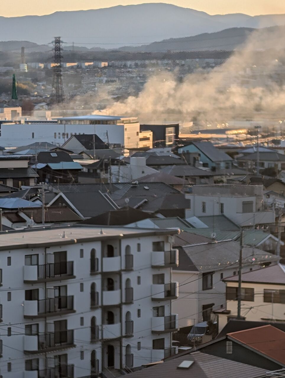 自宅から煙見える