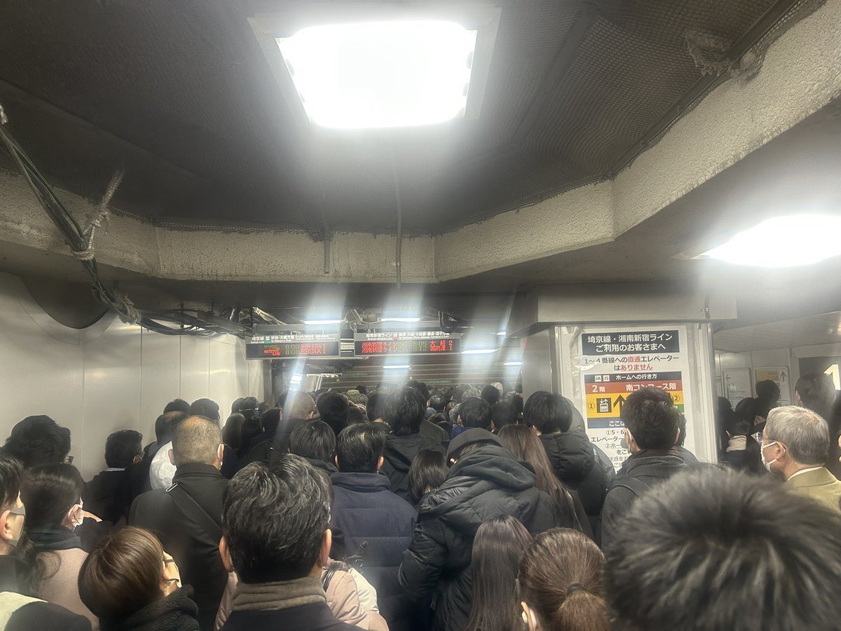新宿駅、渋谷方面に向かう埼京線も大変なことになってるので渋谷方面に行く人は別ルートで向かった方が良さそう pic.twitter.com/Qsqc0XhaNq
