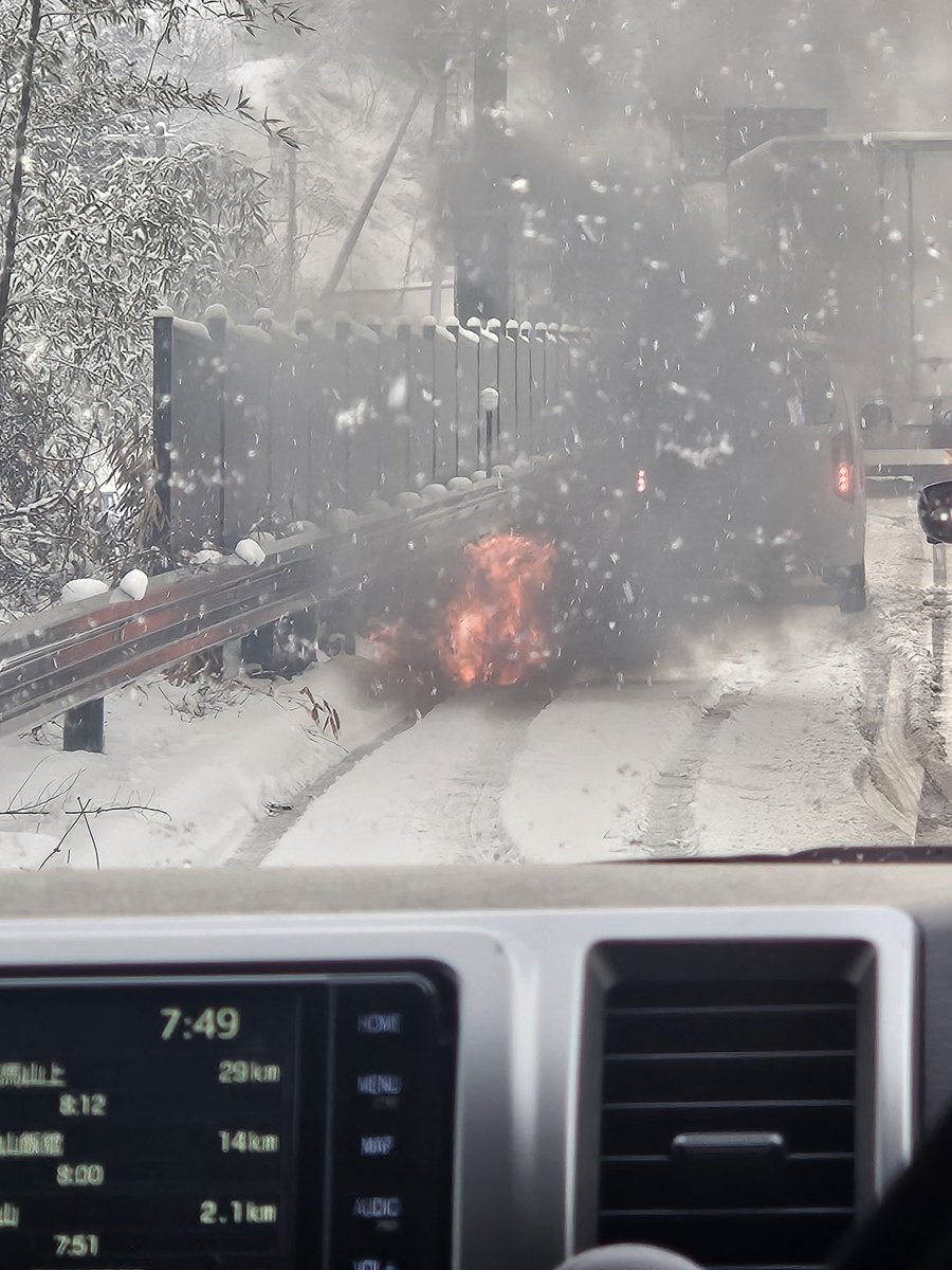 【現場の状況】#交通情報 #東北中央道 (上り)伊達中央IC~相馬玉野IC(下り)霊山IC~伊達桑折IC付近 自動車燃える車両火災で一時通行止め渋滞2月10日 #福島 #伊達 #火災