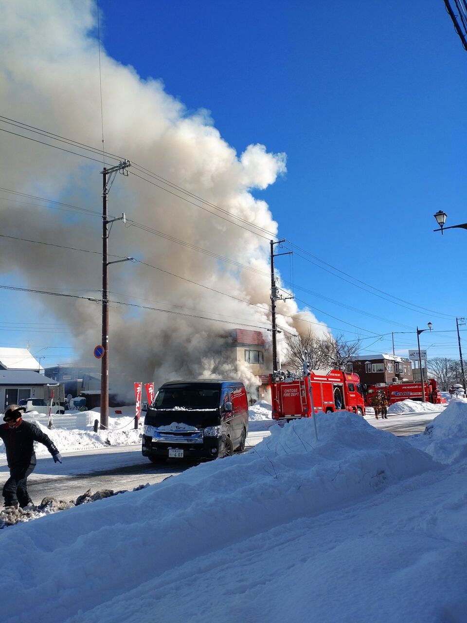 【火事情報】北海道千歳市稲穂1丁目 ラーメン店「らーめん じらいや」付近 建物から煙あがる火災2月10日 #北海道 #千歳 #火災 #ラーメン