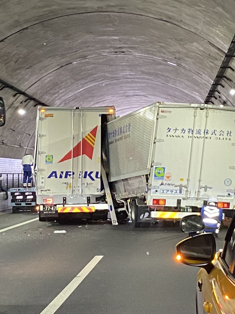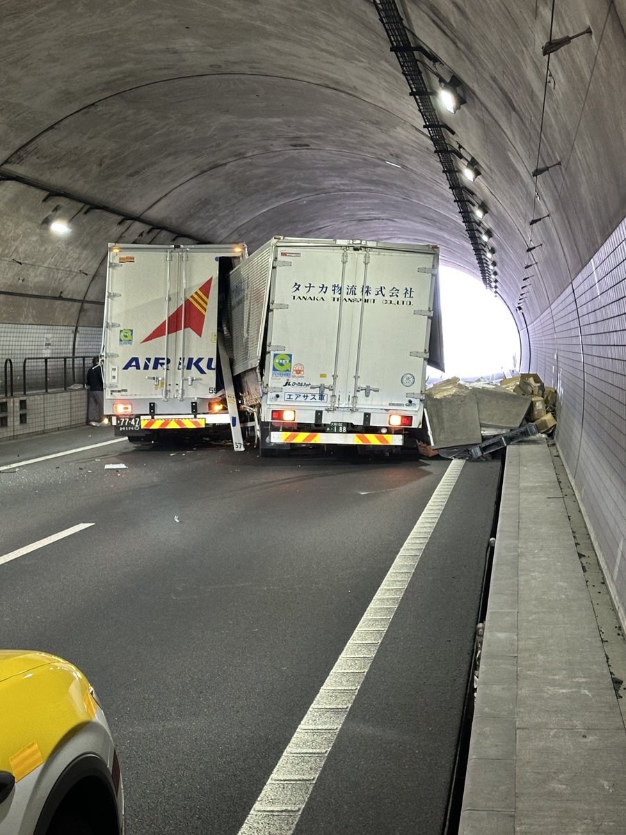 【現場の状況】#交通情報 #新東名 下り 岡崎東IC→豊田東JCT付近 トンネル内車線塞ぐ大型トラック衝突大破 重大事故で通行止め渋滞2月10日 #通行止 #愛知県 #岡崎 #豊田