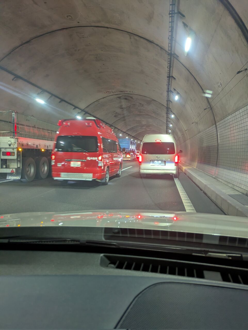 うおー、トンネル入口で完全に交通の流れ止まったー