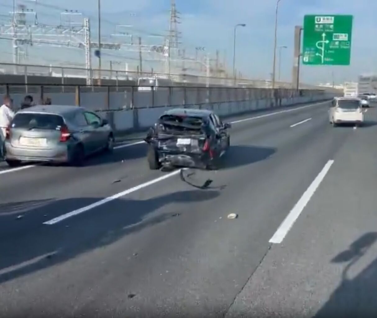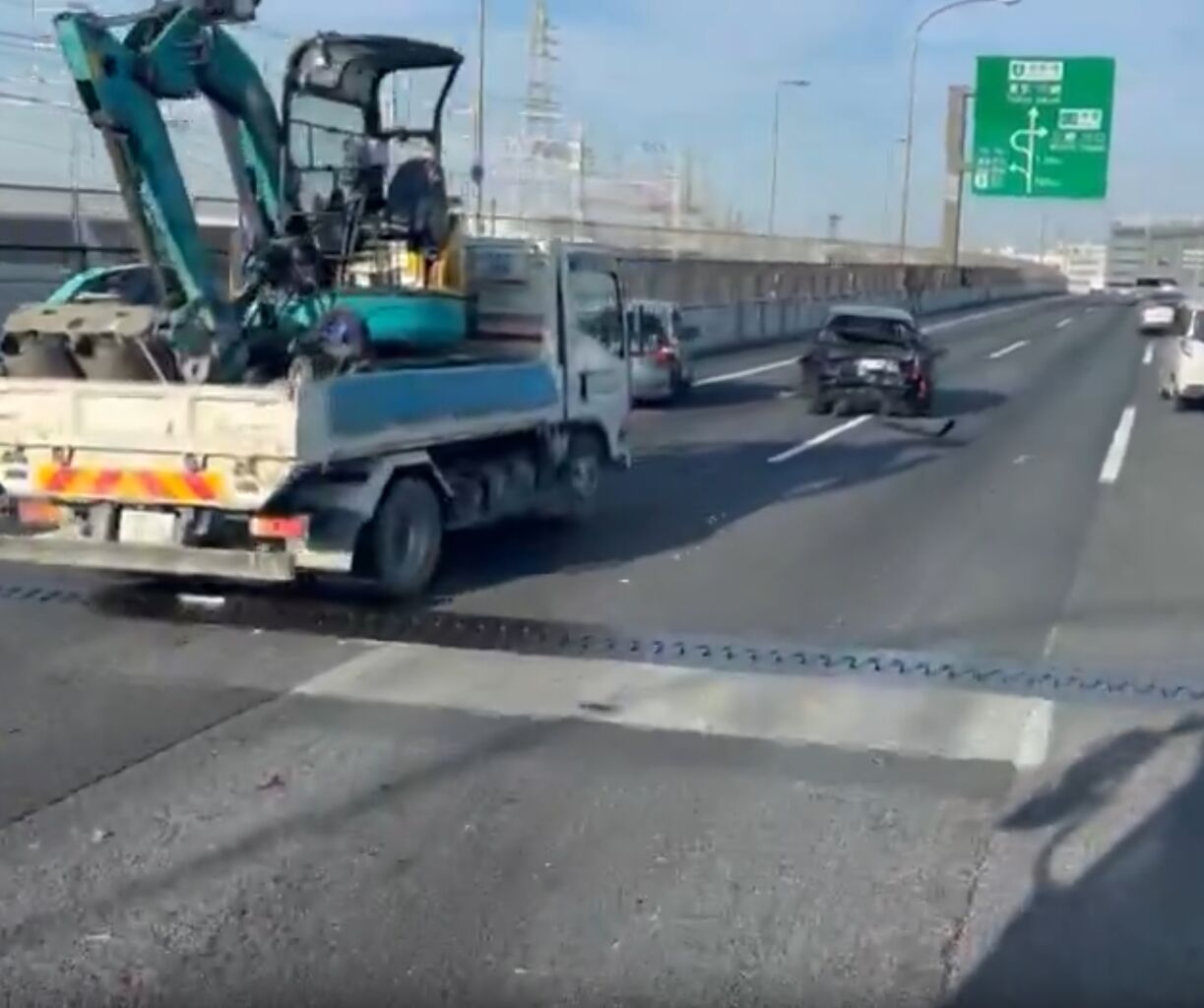 湾岸市川手前で多重事故で2車線規制