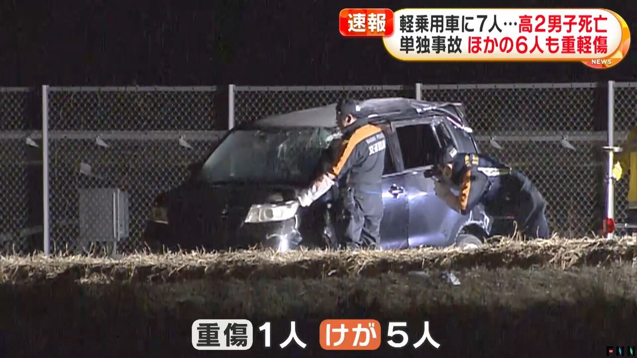 警察によりますと、車には定員を超える7人が乗っていて、何らかの理由で軽乗用車が単独事故を起こしたということです。