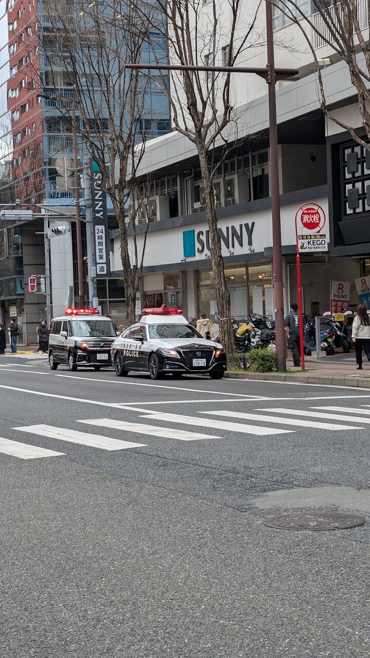 『福岡市 赤坂のサニー前でパトカー2台なにごとぞ? 』