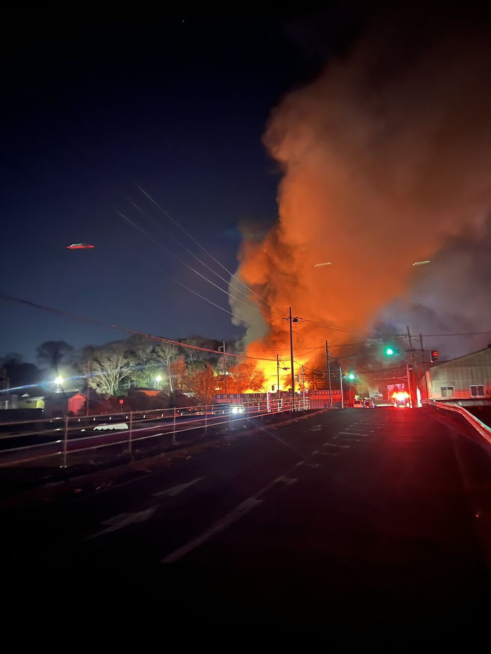『水戸市大串の再利用処理施設で建物火災🔥只今延焼中の為、消防警察出勤してる。一部交通規制』
