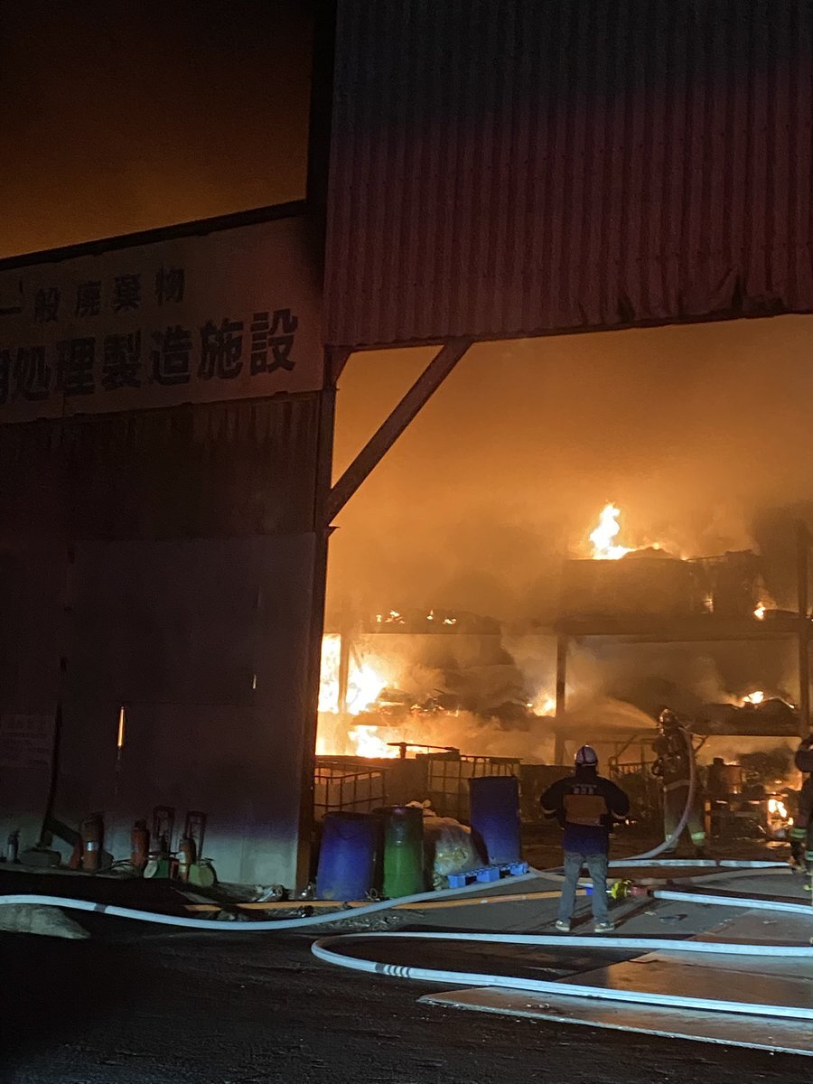 水戸市大串の再利用処理施設で建物火災🔥只今延焼中の為、消防警察出勤してる。一部交通規制 pic.twitter.com/fvUDJgp8Ko