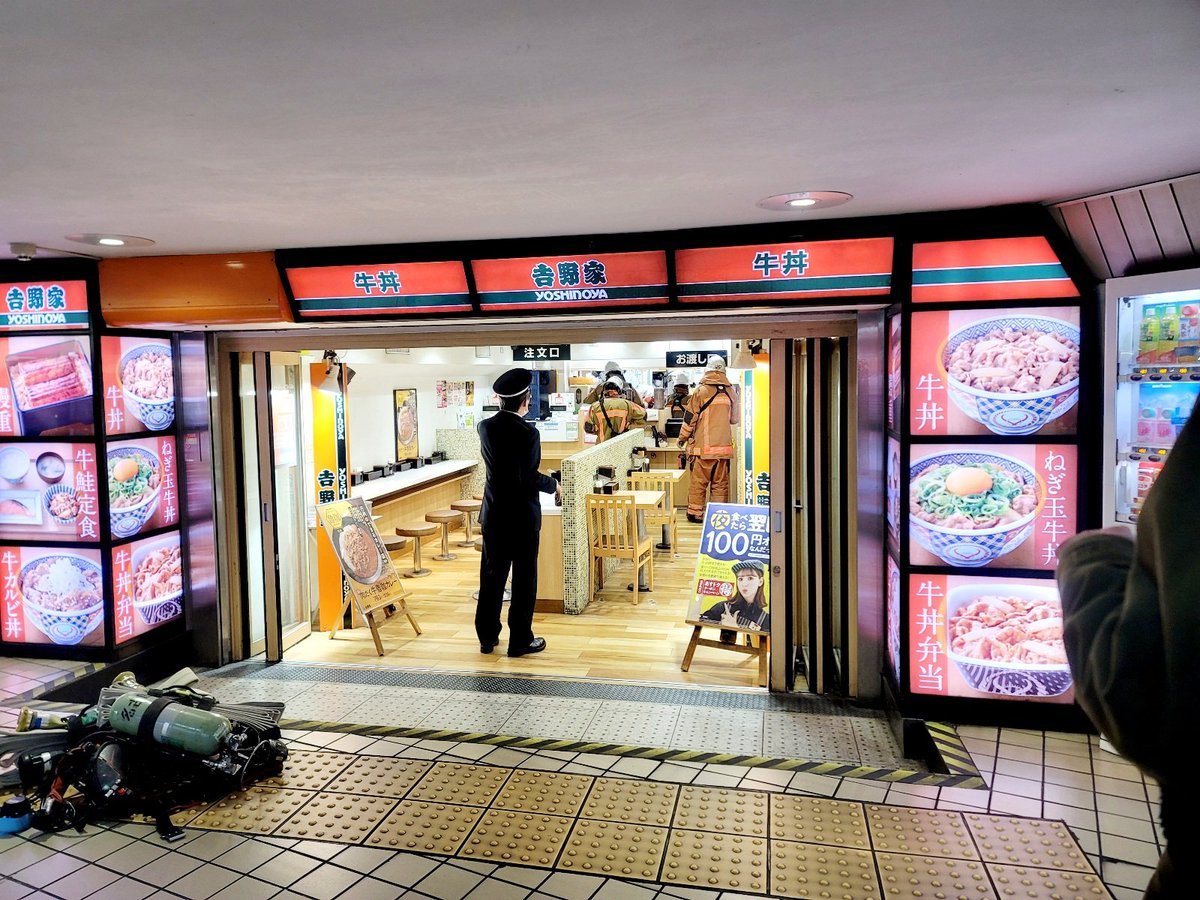 【現場の状況】愛知県名古屋市中村区名駅1丁目 #吉野家 名鉄名古屋駅店に消防隊駆けつける騒ぎ2月14日 #名古屋 #名鉄 #名古屋駅