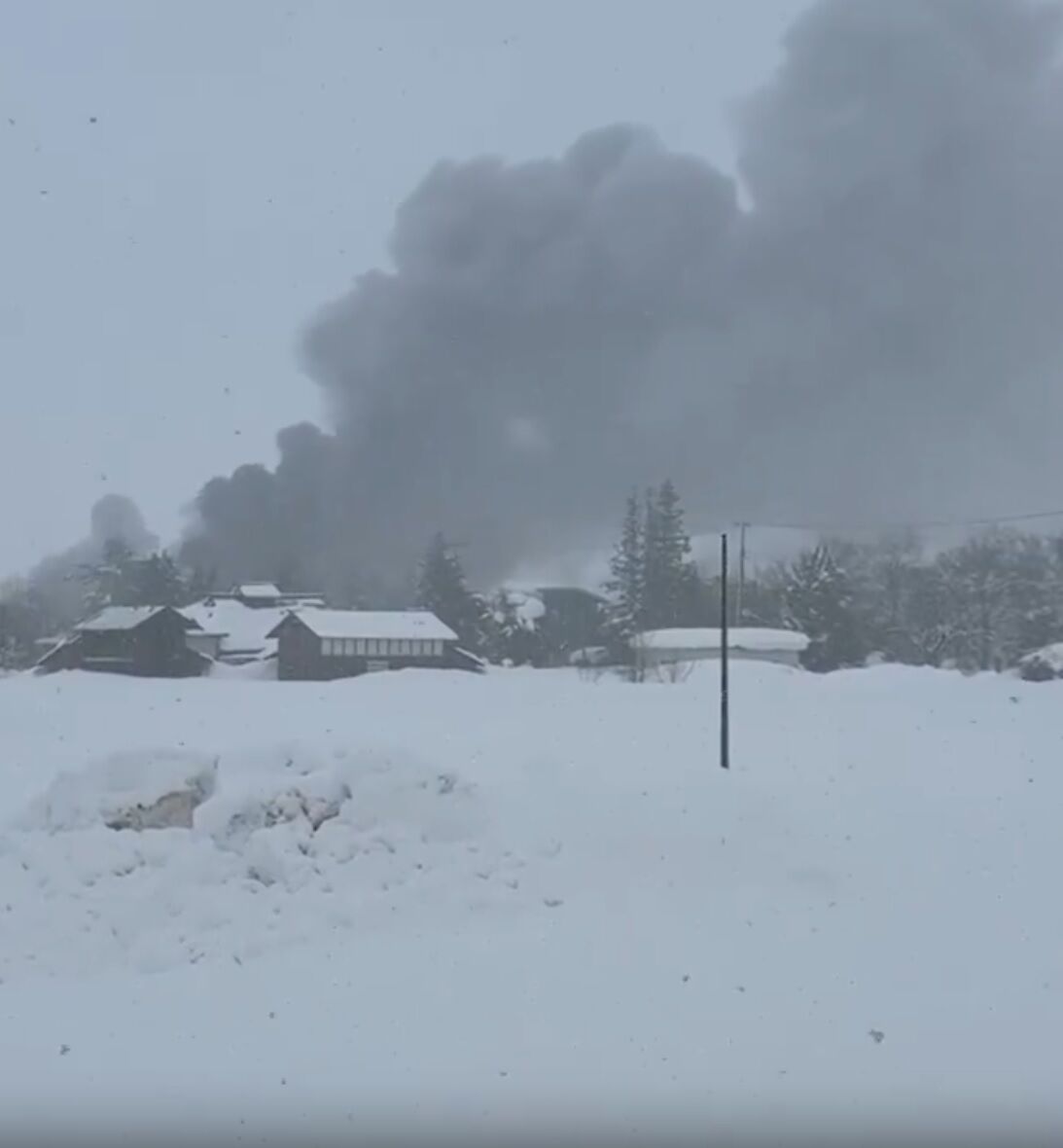 【火事情報】山形県米沢市窪田町窪田 国道13号線沿い 米沢ヤクルト付近 建物から黒煙あがる火災2月14日 #山形 #米沢 #ヤクルト#火災