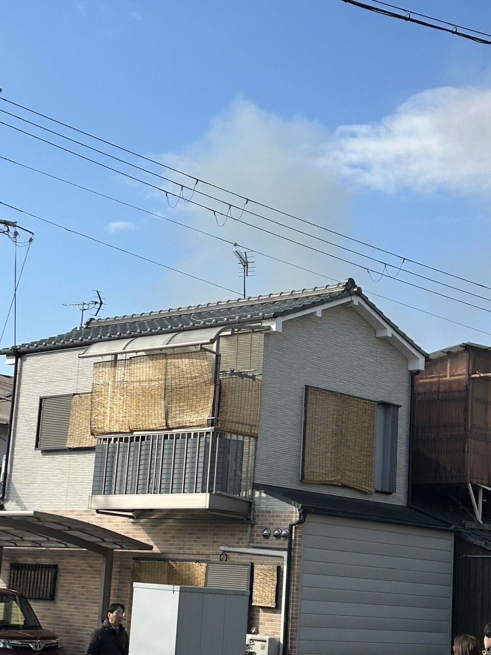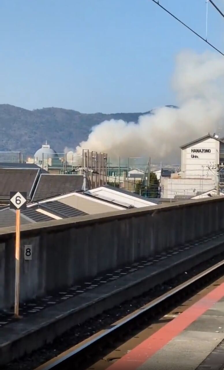 【火事情報】京都府京都市右京区花園八ツ口町 #嵯峨野線 花園駅~円町駅間線沿い付近 建物から煙あがる火災2月14日 #京都 #右京区 #火災
