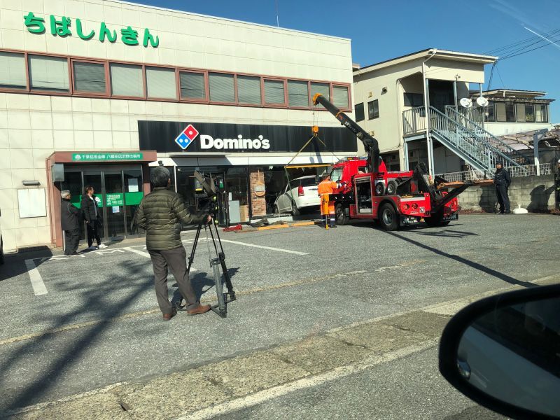 【目撃証言】#交通情報 千葉市中央区浜野町 #内房線 浜野駅付近 ドミノピザ浜野店に自動車突っ込む事故2月14日 #千葉 #浜野 #ドミノピザ #ピザ