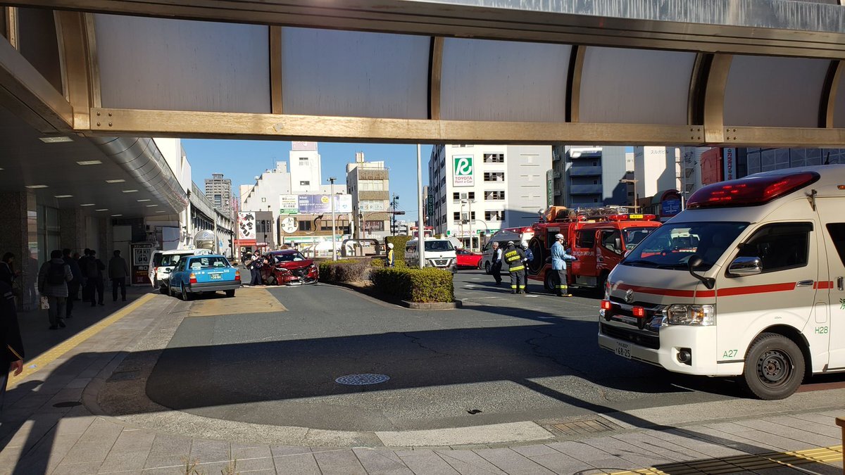 【現場の状況】#交通情報 JR浜松駅南口付近 乗用車がタクシに衝突する事故 60代男性1人と70代男性2人が怪我 医療機関に搬送2月14日 #静岡 #浜松