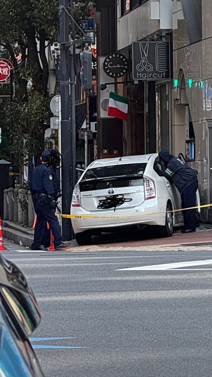 【現場の様子】#交通情報 東京都港区新橋1丁目 #山手線 新橋駅西側付近 歩道に普通乗用車突っ込む事故 一部歩道交通規制2月16日 #港区 #新橋