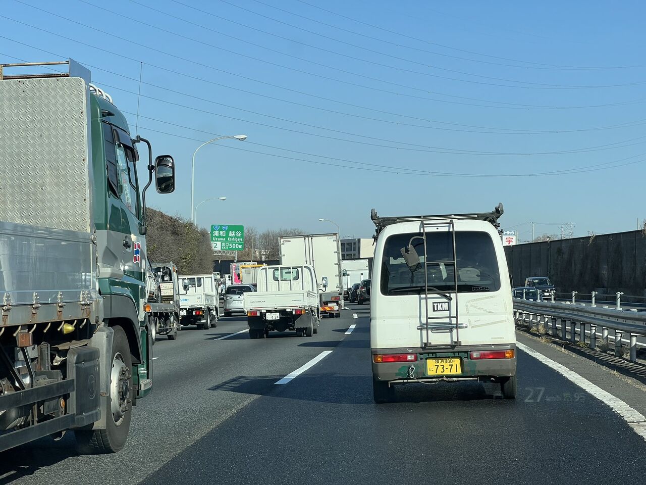 『東北道下り浦和料金所手前、追い越し車線でオカマ、また外国人2tダンプ』