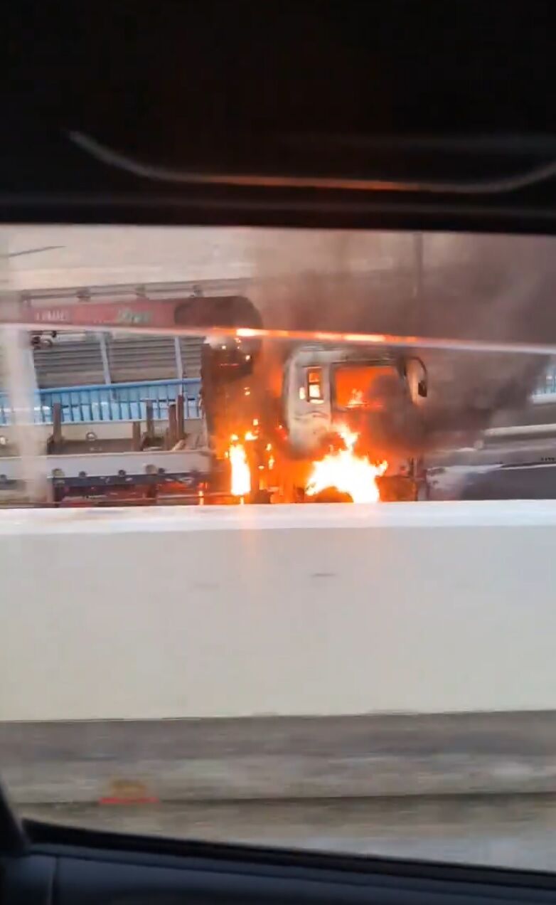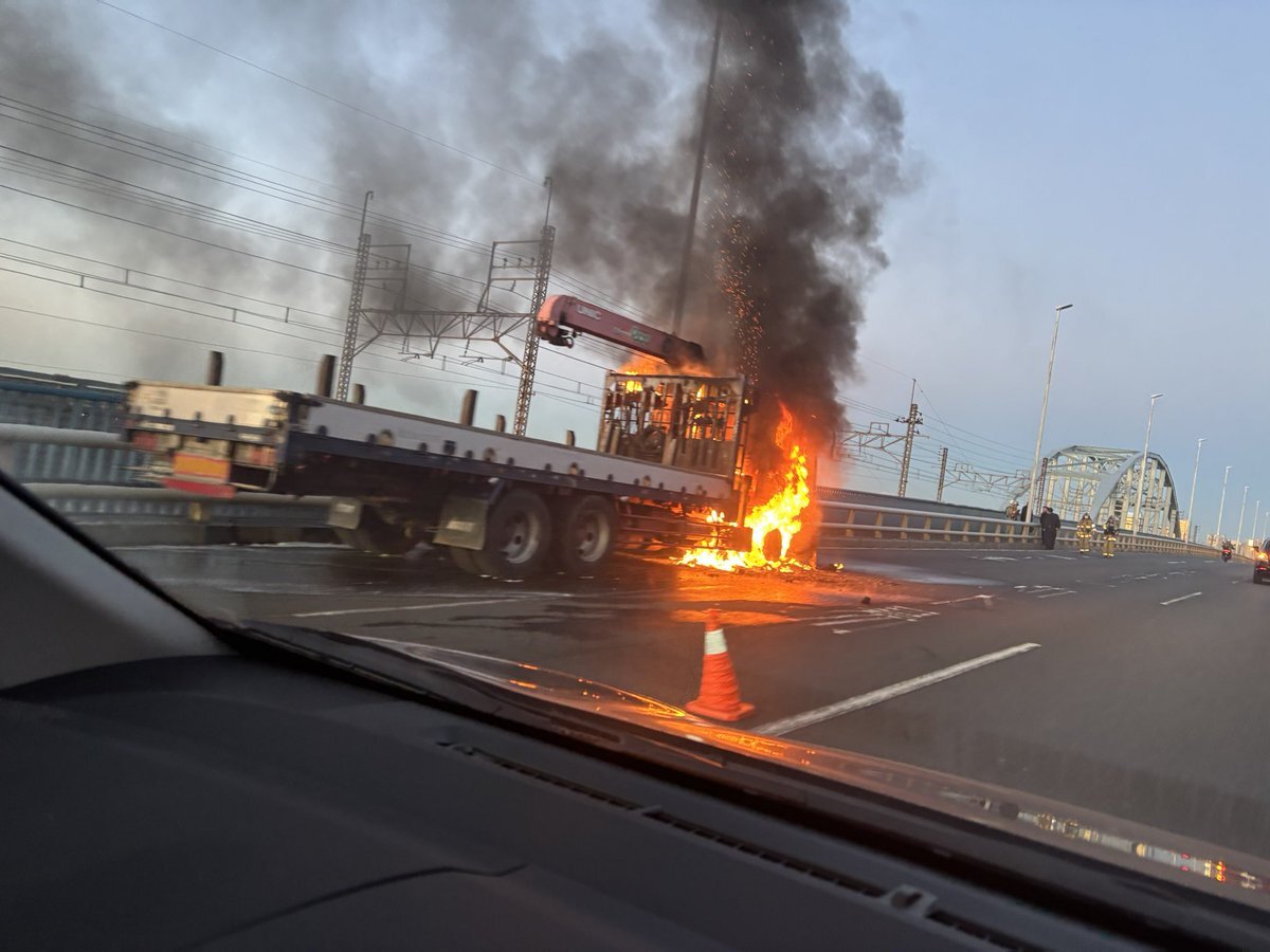 R357 葛西の橋の上でユニック車燃えてた🚚🔥#国道357 #R357 #葛西 #火災 #事故 pic.twitter.com/HTA1tjxcC3
