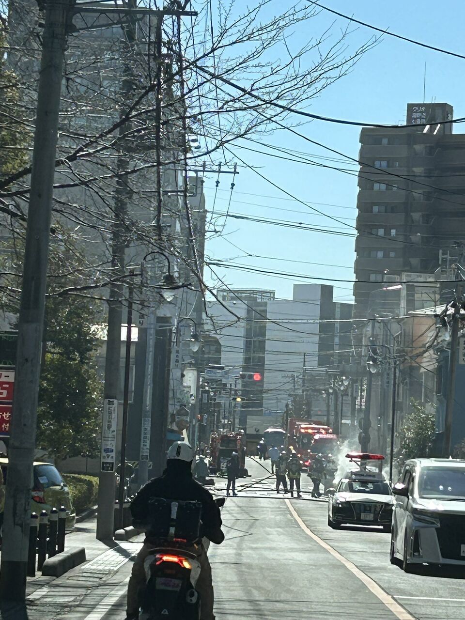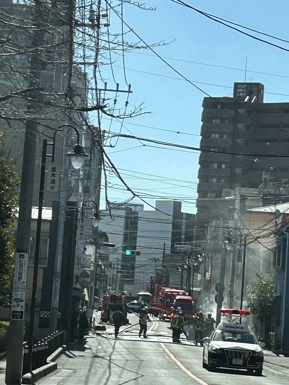 近くの病院の看護師AED持って走るわ、救急車きてパトカーきて、消防車4台通っていやーあの場所救助活動も交通整備も火消しもなかなか大変』