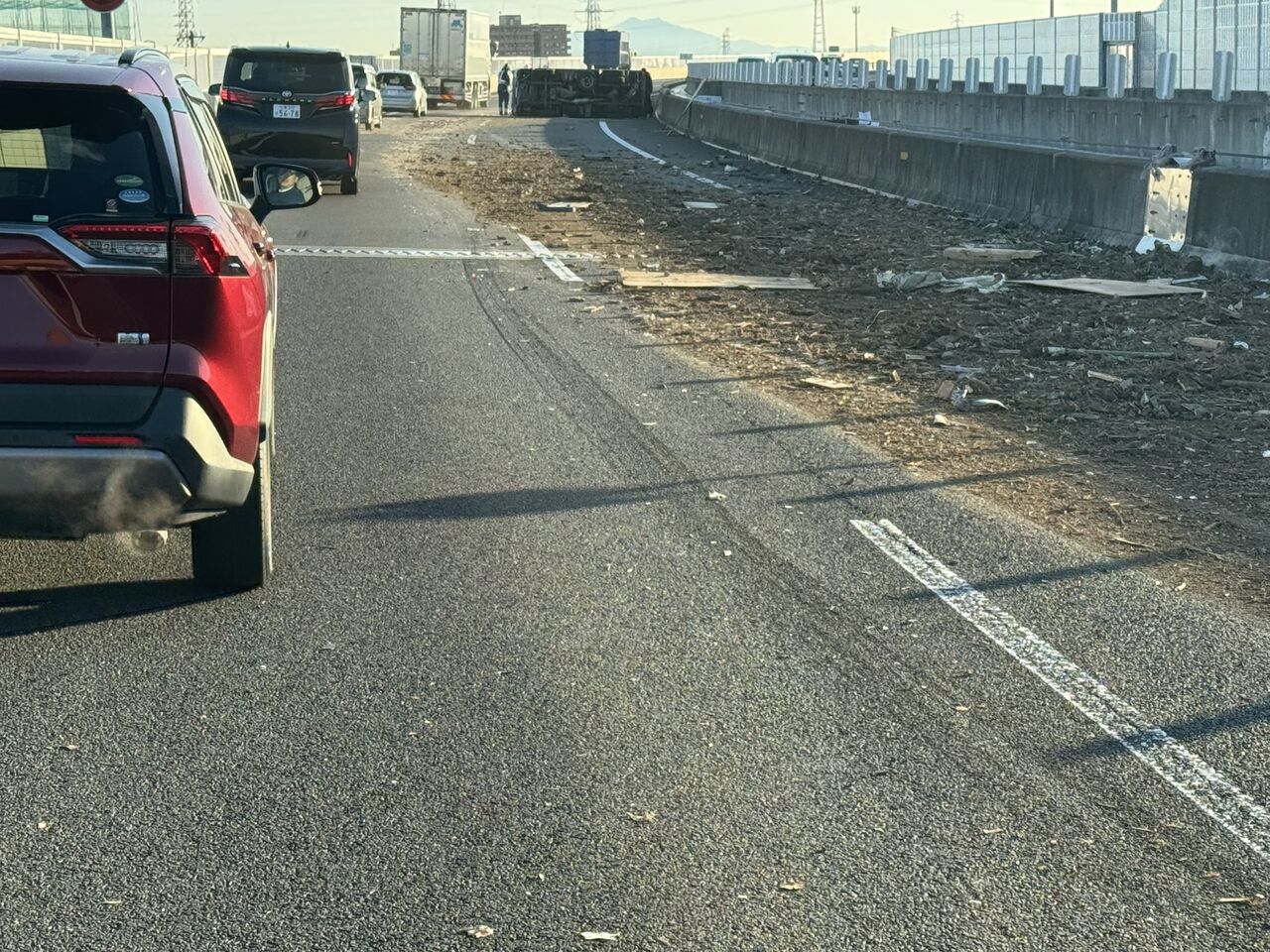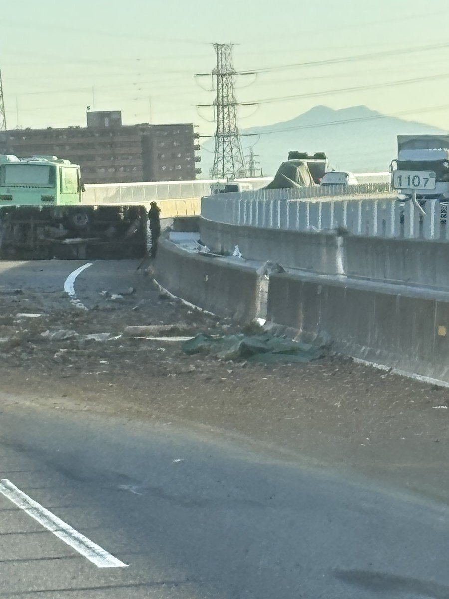 圏央道外回り幸手インター手前で横転事故してたトラックは散乱物からするとクルドカー? pic.twitter.com/onxPw49N6N