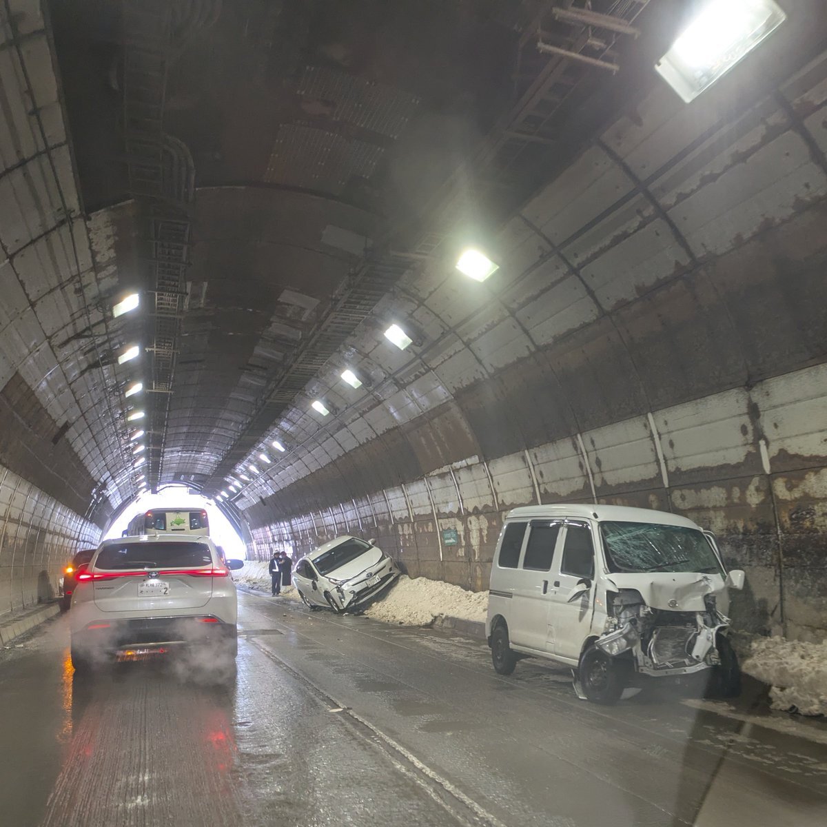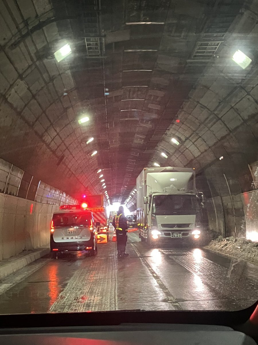 中山峠のトンネル内で事故があって片側交互通行です、これから通過する方はお気を付けて pic.twitter.com/fPIfzQxw6g