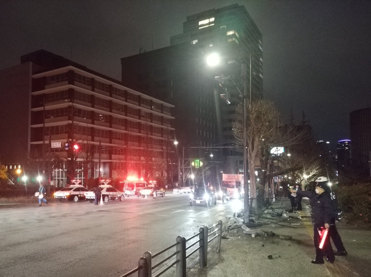 【現場の状況】#交通情報 靖国通り 東京都千代田区 九段下靖国神社武道館付近 ガードレール破壊破片散乱横転事故で規制渋滞2月23日 #九段下 #靖国神社 #三連休