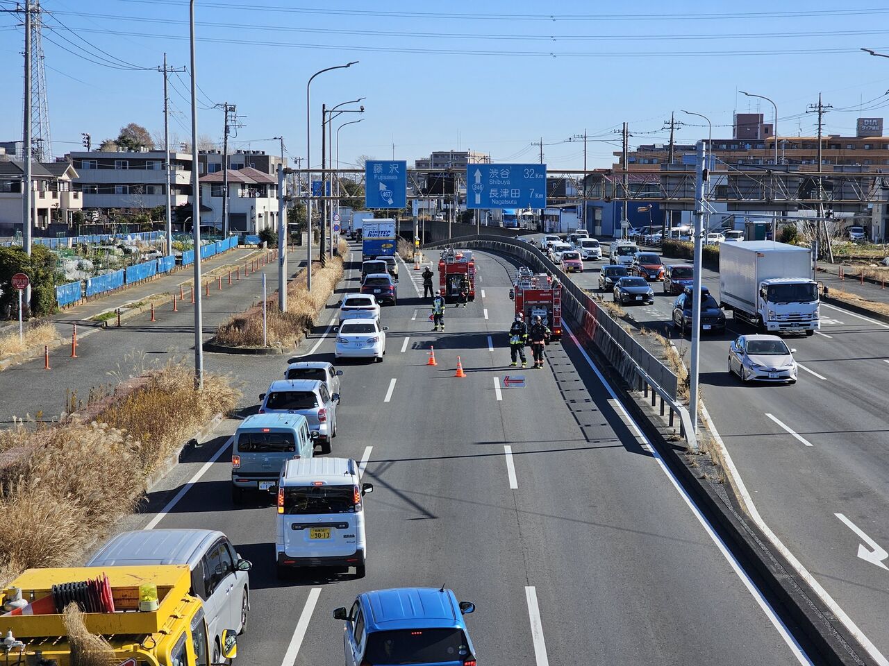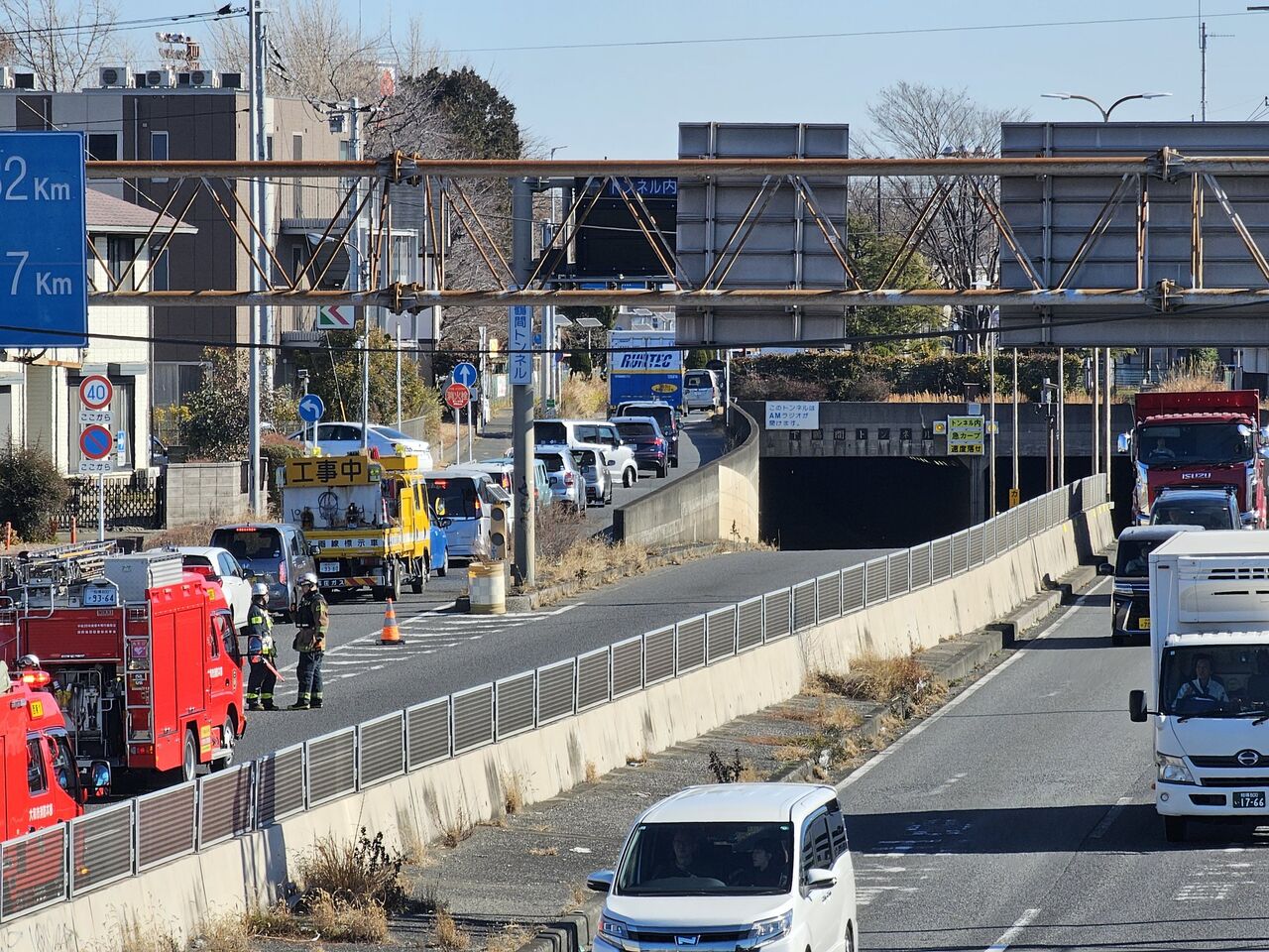 【現場の状況】#交通情報 国道246号 上り 神奈川県大和市 下鶴間トンネル付近消防車など出動し一部交通規制渋滞2月24日 #渋滞 #神奈川 #大和市 #三連休