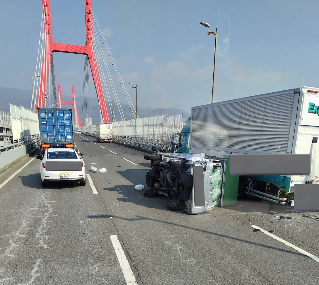 六甲大橋の横転の軽貨物
