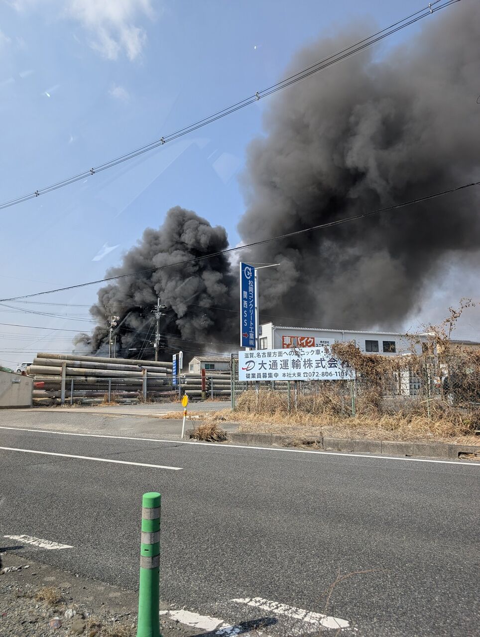 【火事情報】京都府八幡市戸津堂田 国道1号線 京阪道路北側付近 資材置き場から激しい黒煙あがる火災2月27日 #京都 #八幡 #火災