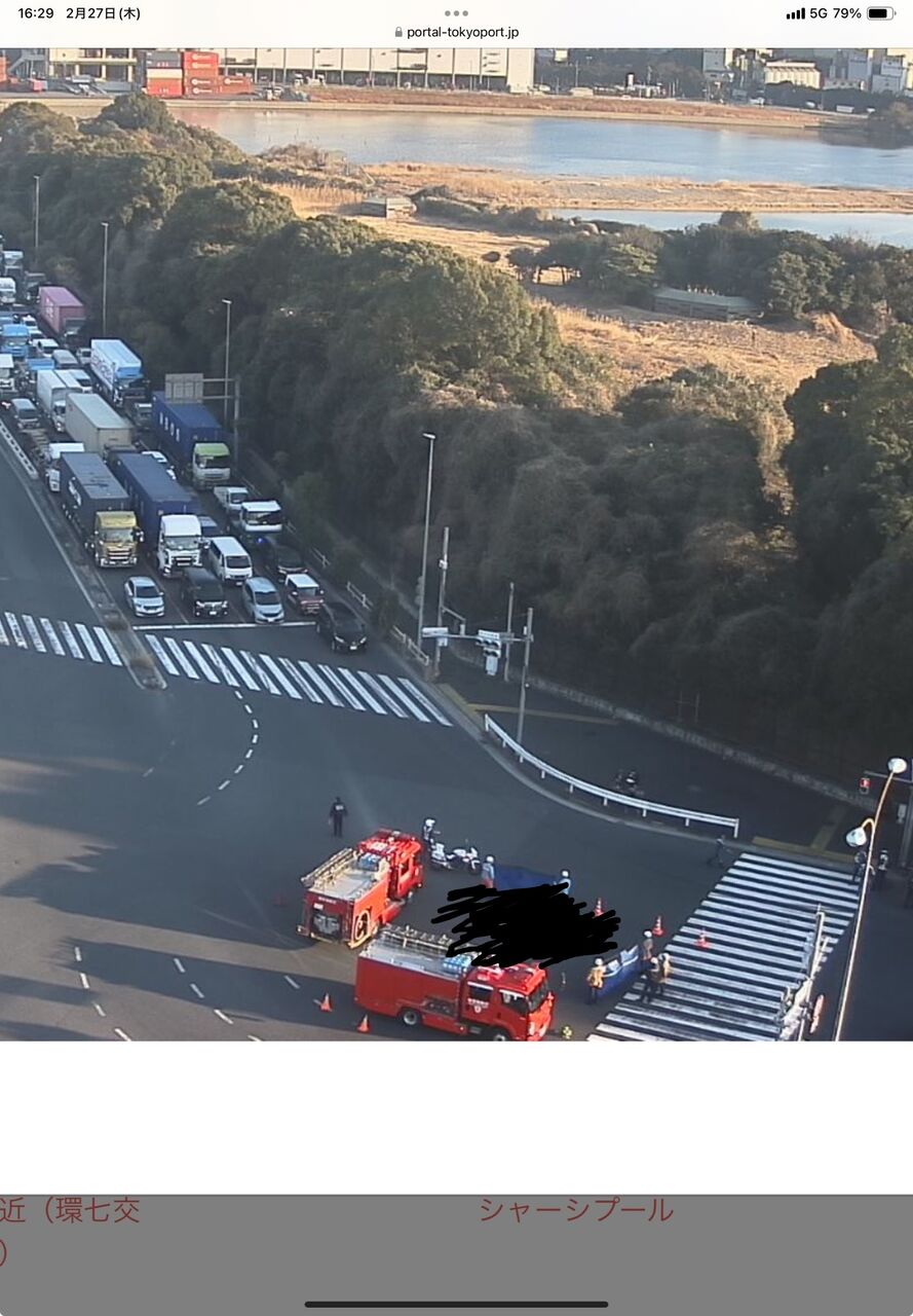 【現場の状況】#交通情報 環七通り東京都大田区野鳥公園東付近 車線塞ぐ人身事故で規制渋滞2月27日 #渋滞 #大田区 #大井埠頭 #城南島