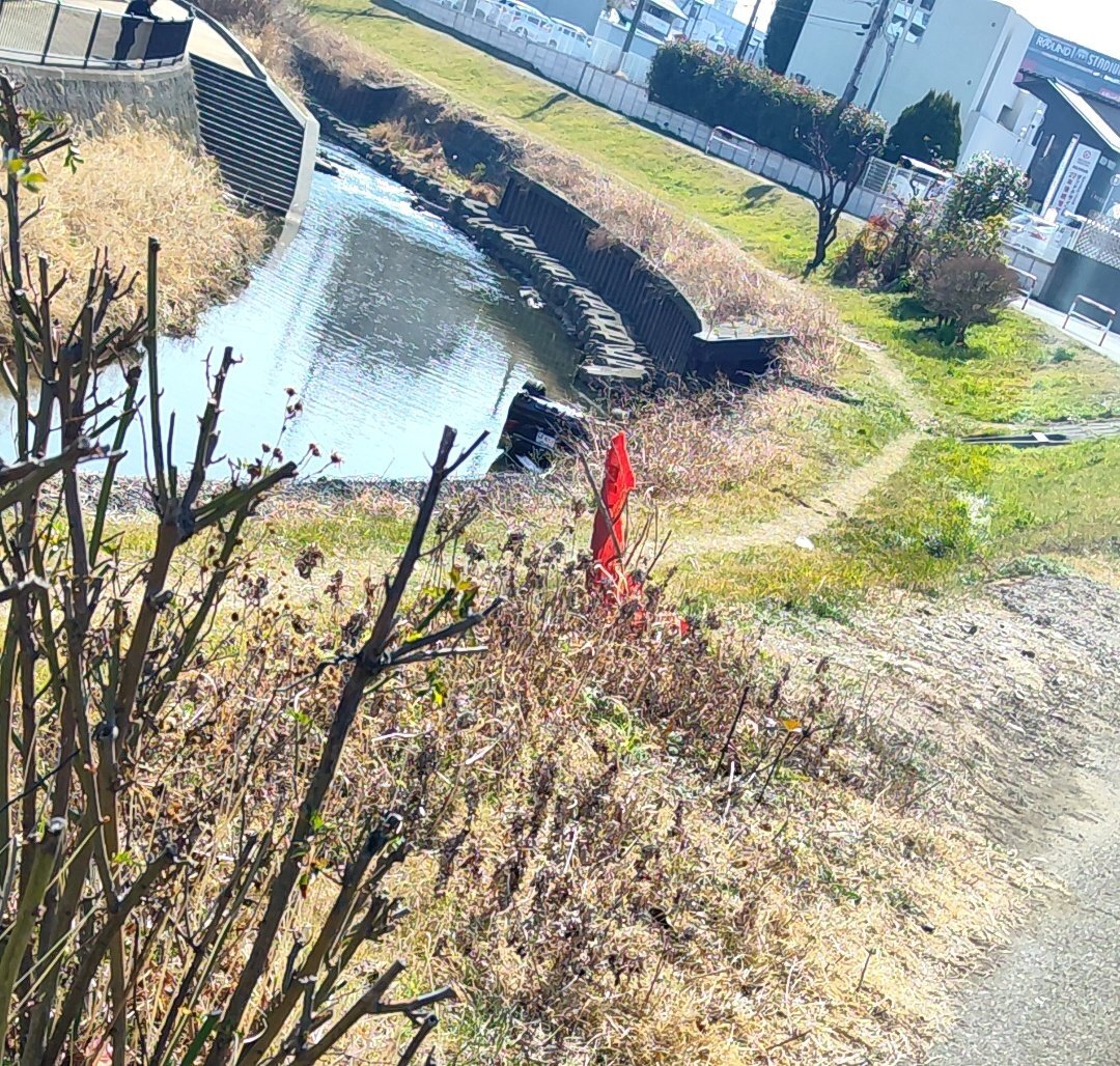 職場前の川に車落ちてて草🌱
