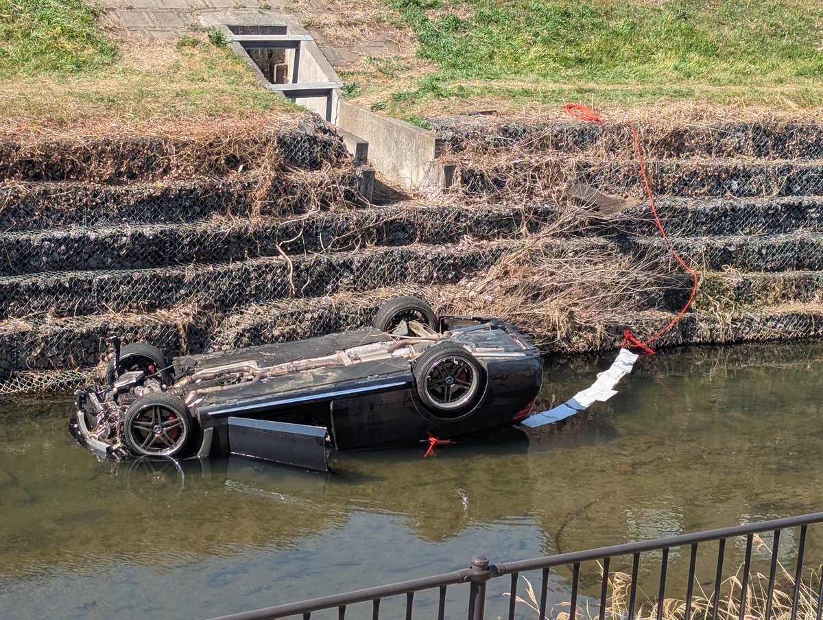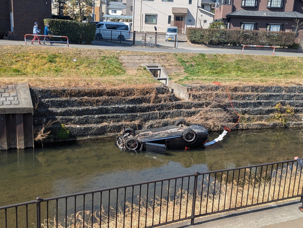なんでこんな所で車が川に落ちたんだろう、、乗っていた人は無事だろうか?#朝霞市#黒目川#事故 pic.twitter.com/gfXvG749CN