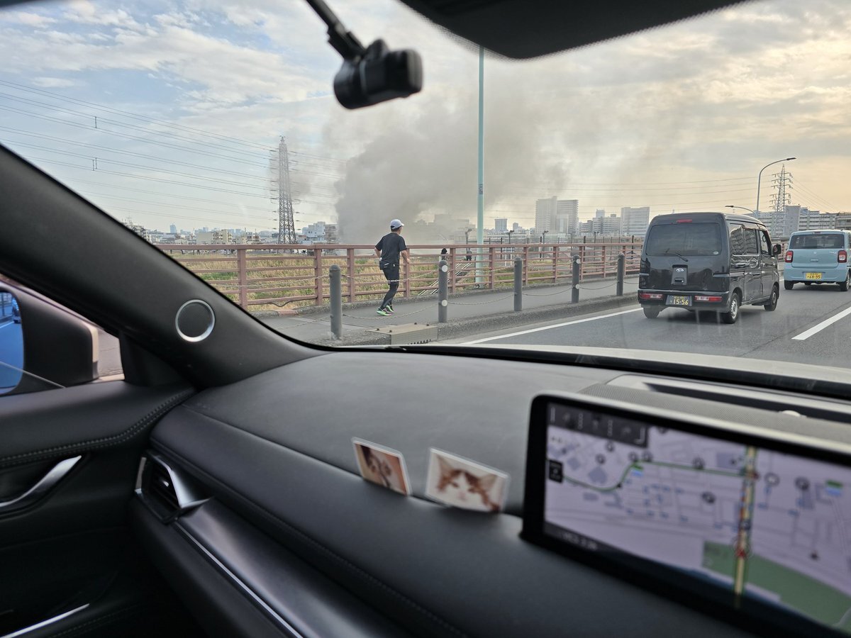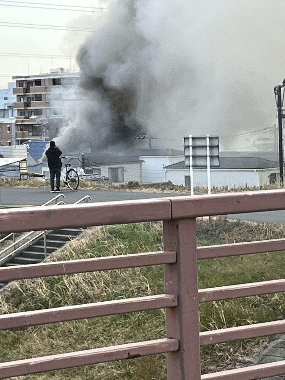 『火事で大渋滞…荒川沿いの家が燃えてました。』
